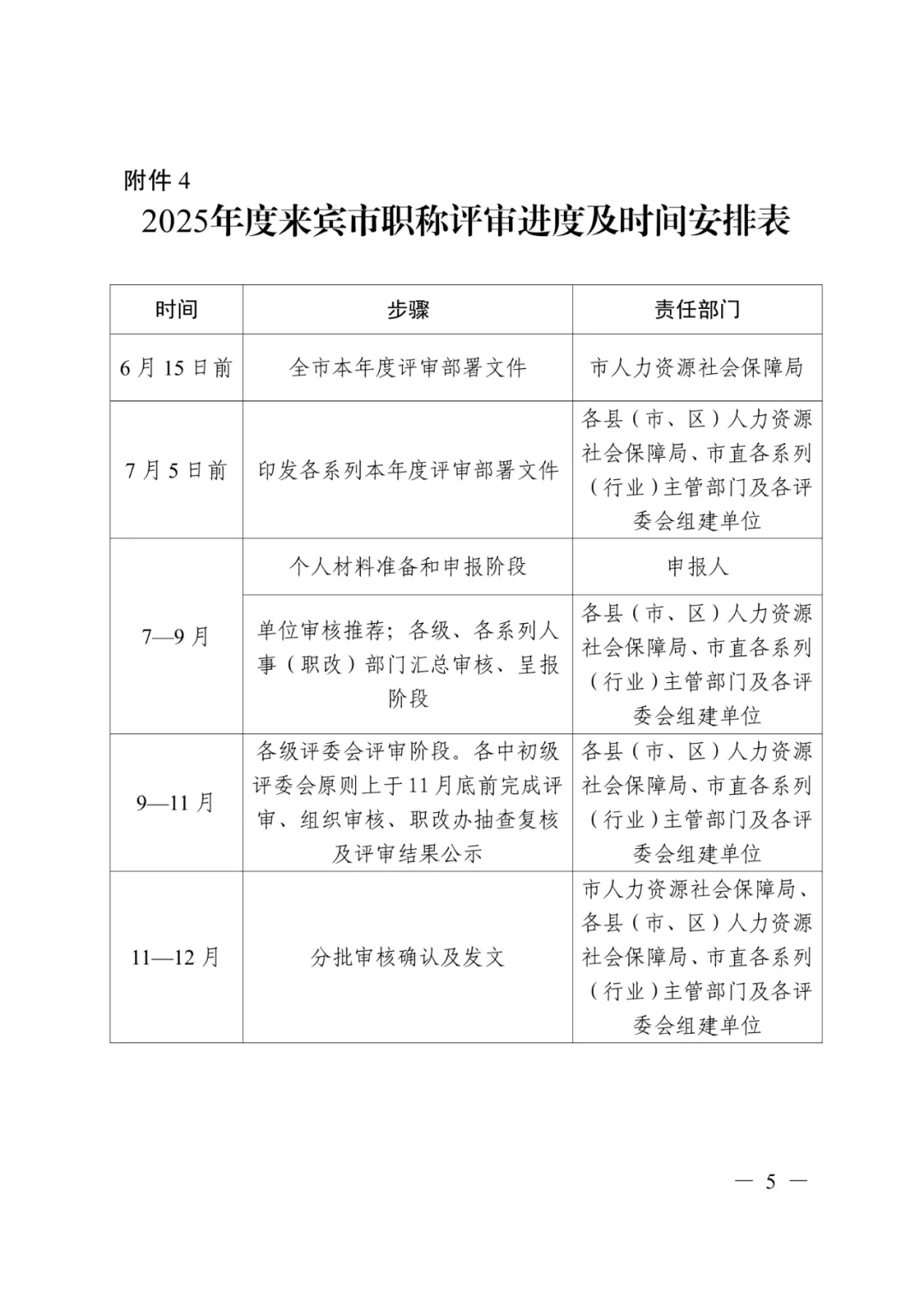 4.2025年度来宾市职称评审进度及时间安排表